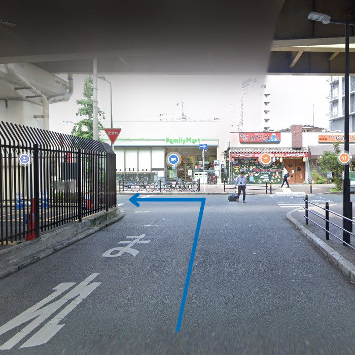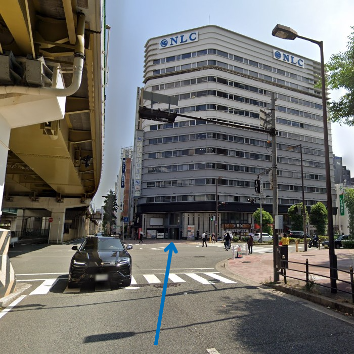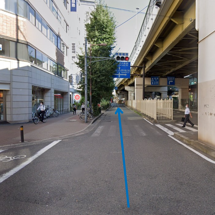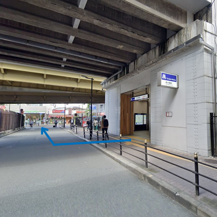 西中島南方駅の1番出口から出ましたら、そのまま正面方向、高架道路に沿って進みます。