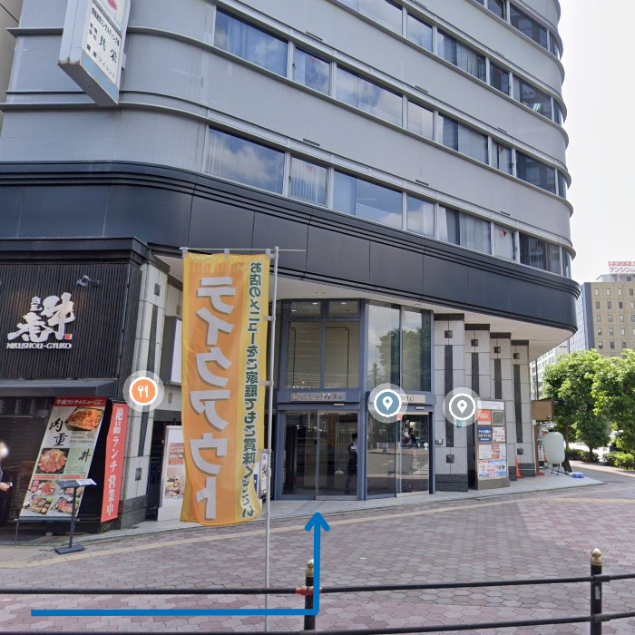 5分ほど直進し、大きい交差点の角に見えるビルに弊社オフィスがございます。